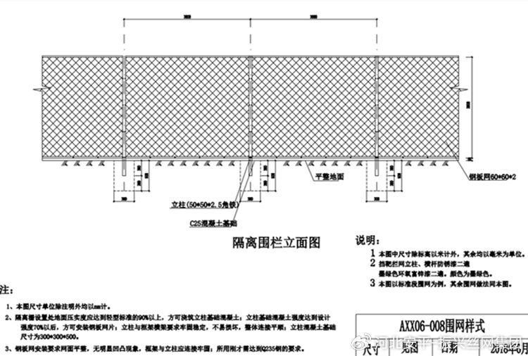 5.本图以标准段围网为例,其余围网做法同本图。