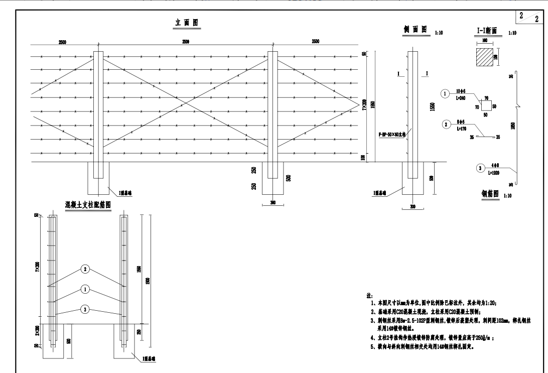 2、基础采用C20混凝土现浇,立柱采用C20混凝土预制;